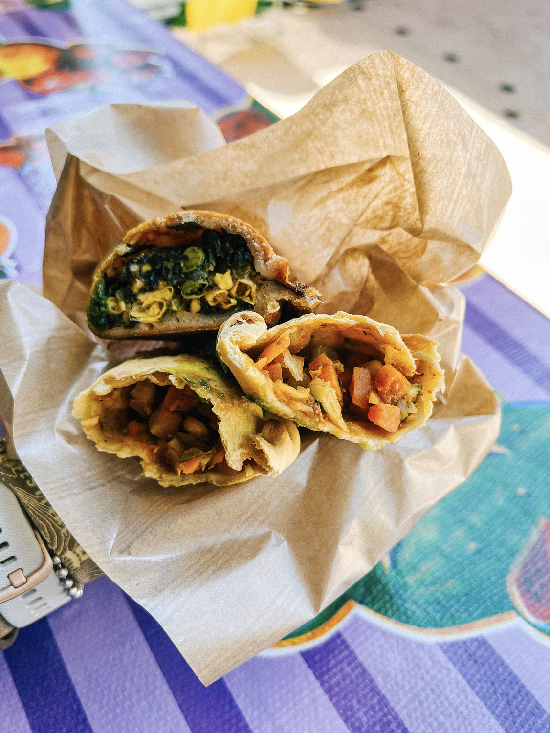 Der Teig geht auf ein chilenisches Rezept zurück und ist zu 100 % vegan, die Form orientiert sich an der argentinischen Variante, die Füllungen inspirieren sich mal da, mal dort und verbinden sich unterwegs mit dem, was uns gerade anlacht und durch Kopf und Gaumen geht.